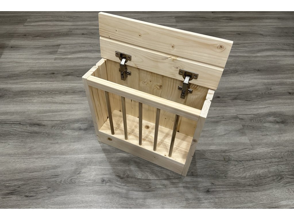 Jak uchovat seno, trávu, bylinky v čistotě, bez rizika znehodnocení výkali a močí? Tento seník Vám může pomoci. Prostor pro výplň je opravdu dostatečně velký a navíc je vyroben ze smrkového dřeva bez jakéhokoliv chemického ošetření, takže se nemusíte bát, když se do něj například králík s radostí pustí. Stále čistou potravu a případné bezpečné obrušovaní zoubků umí zaručit tento seník. Panty, kterými je připevněno víko seníku, jsou opravdu pevné, takže samostatné odklápění při tahání sena či jiné dobroty zvířetem nehrozí.