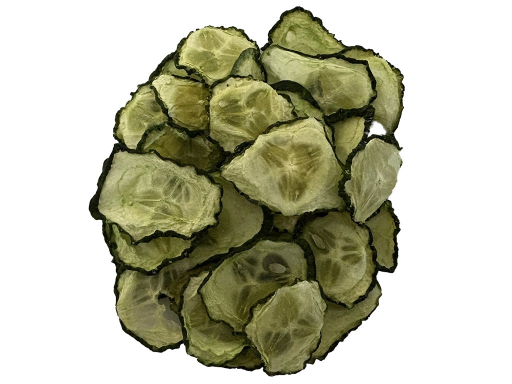 Okurka patří mezi velmi zdravé pamlsky. Obsahuje vitaminy C, K i B a navíc skvěle chutná. Balení obsahuje vzduchem sušené plátky okurky bez soli, olejů a dalších přísad.